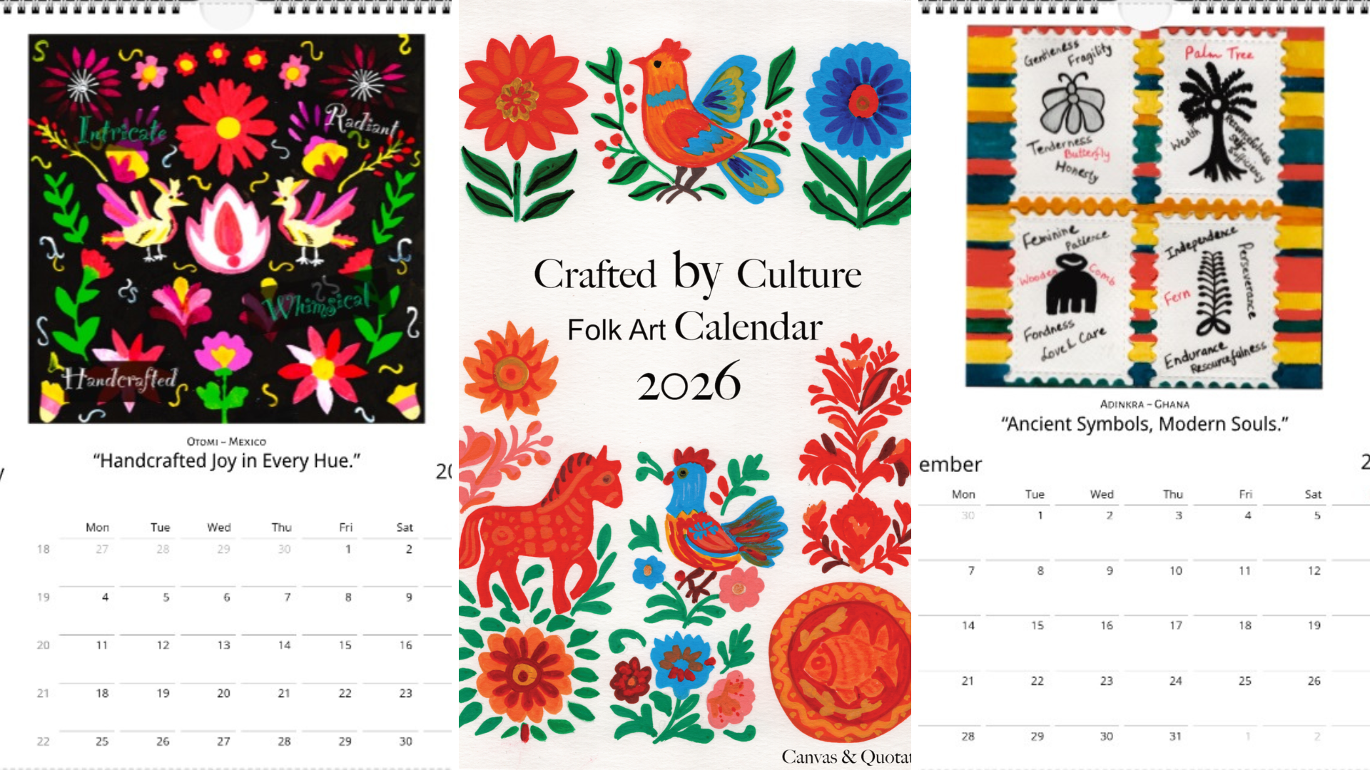 The 2026 Folk Art Calendar is a celebration of the soul of cultures around the world, a vibrant expression of traditions, stories, and everyday life. From intricate symbols to delicate paper cuttings, from colorful carvings to bold textile designs, each piece carries the heartbeat of its people.